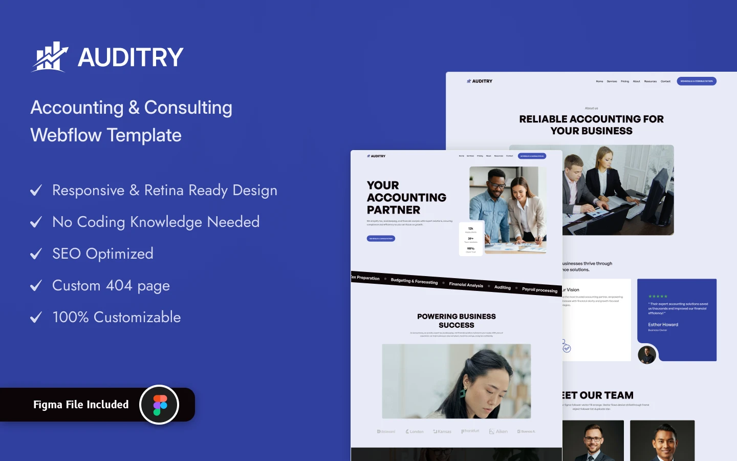 Get the figma file of Auditry webflow website template. Auditry combines minimal design, charming animation, advanced interaction, and CMS functionality. Perfectly suited for finance, accounting, financial advisors, banking, consulting professionals or other financial advisory websites.