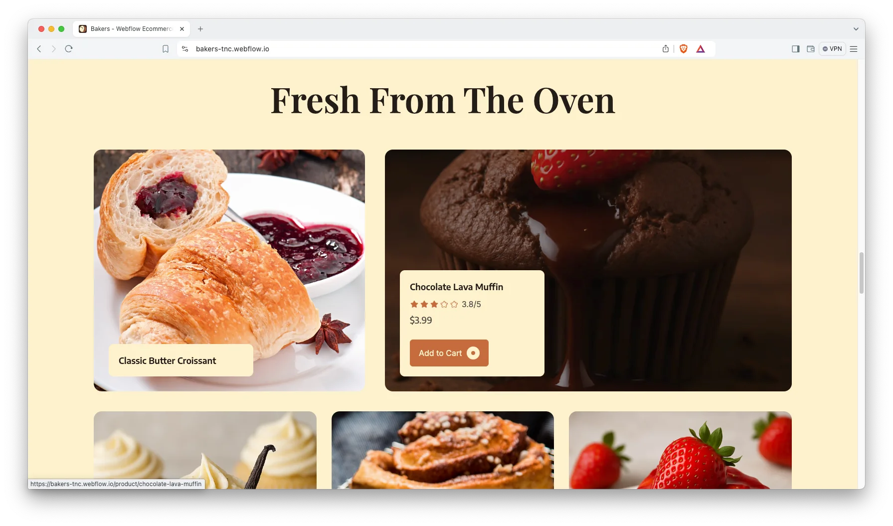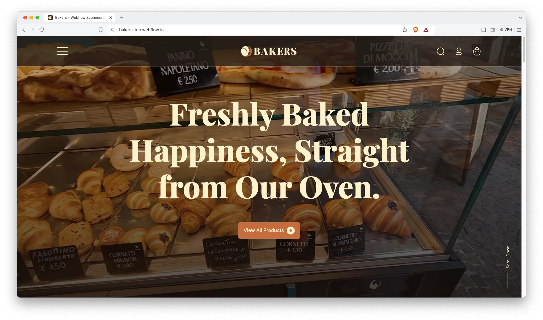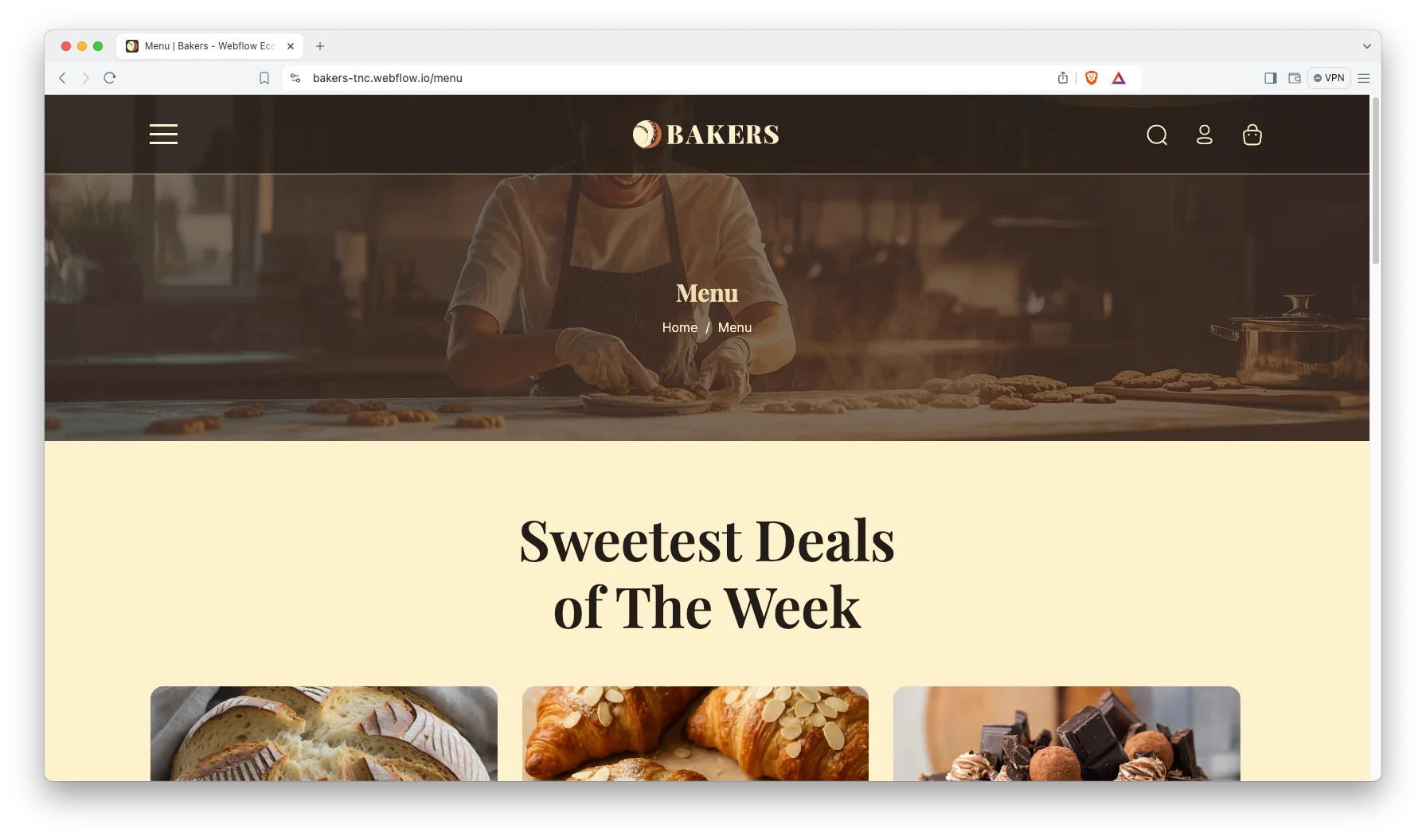 Bakers is a minimal webflow eCommerce template built for bakeries, chocolatiers, pastry shops, sweet shops, cafes & restaurants. Create a delightful online presence to showcase your delicious dishes through elegant design & advanced interaction.