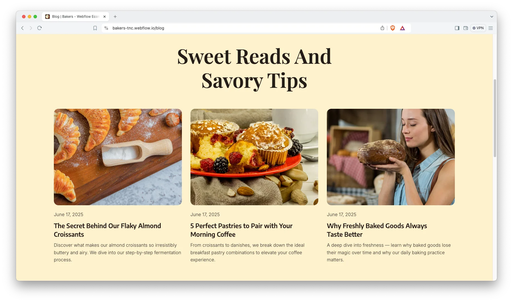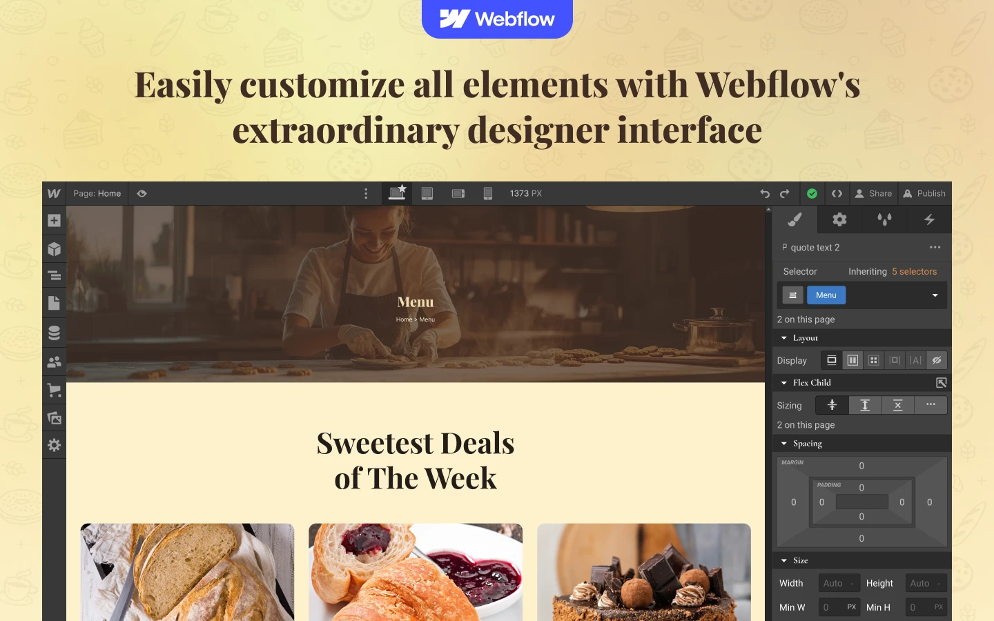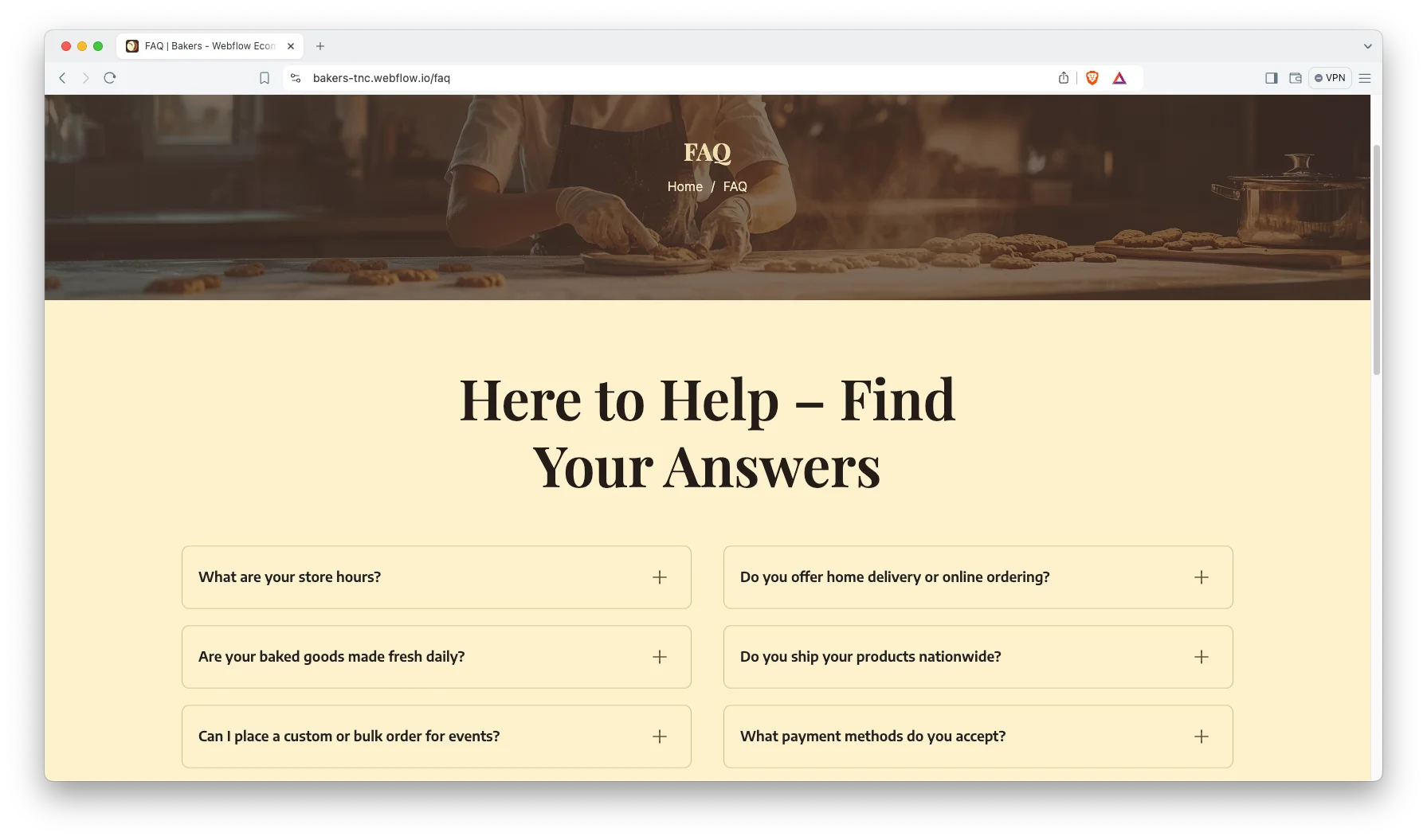 Bakers is a minimal webflow eCommerce template built for bakeries, chocolatiers, pastry shops, sweet shops, cafes & restaurants. Create a delightful online presence to showcase your delicious dishes through elegant design & advanced interaction.