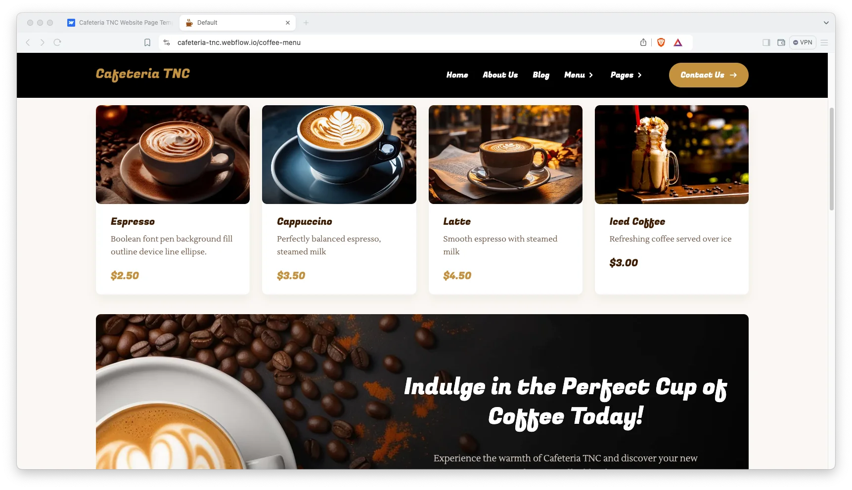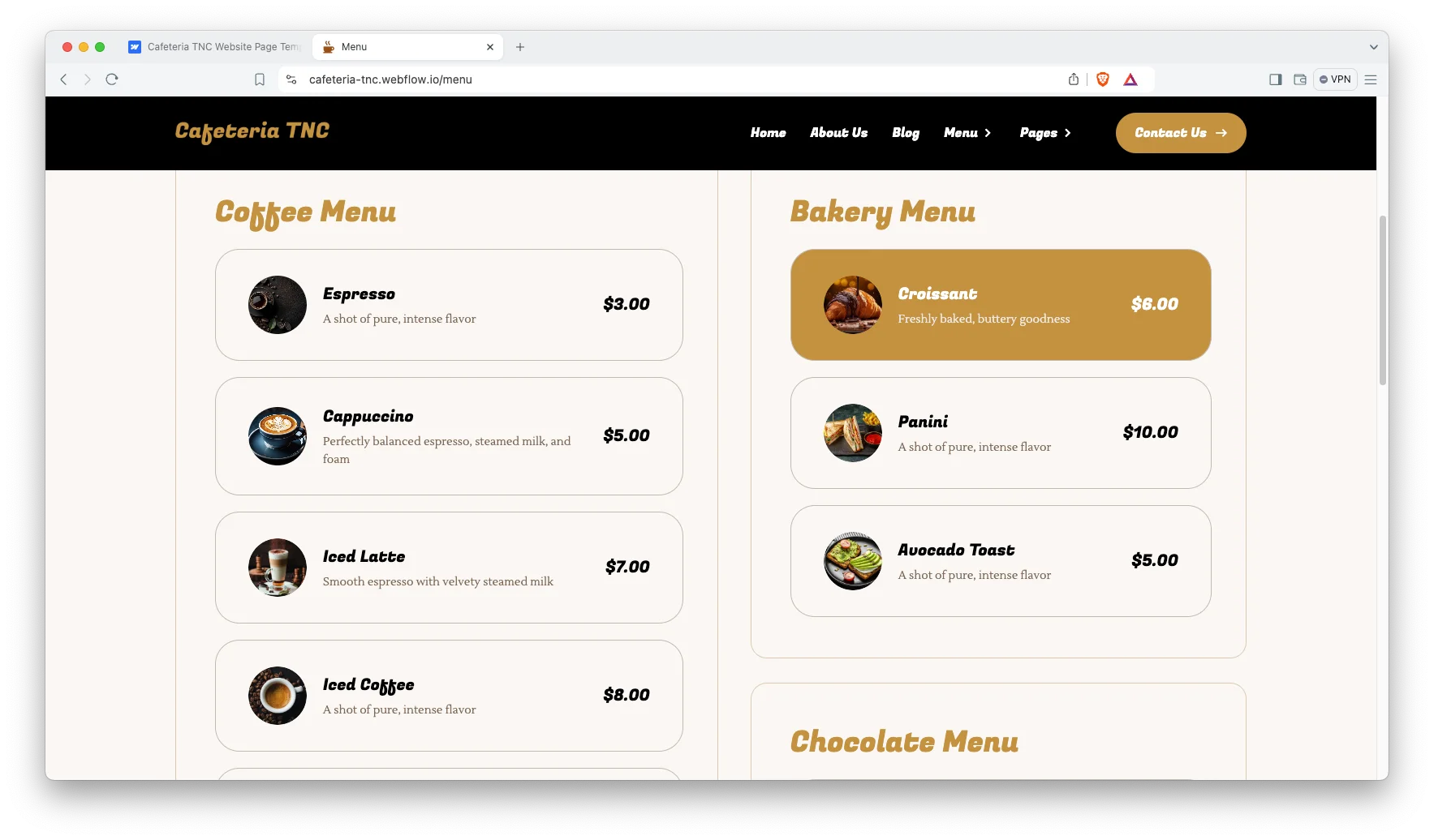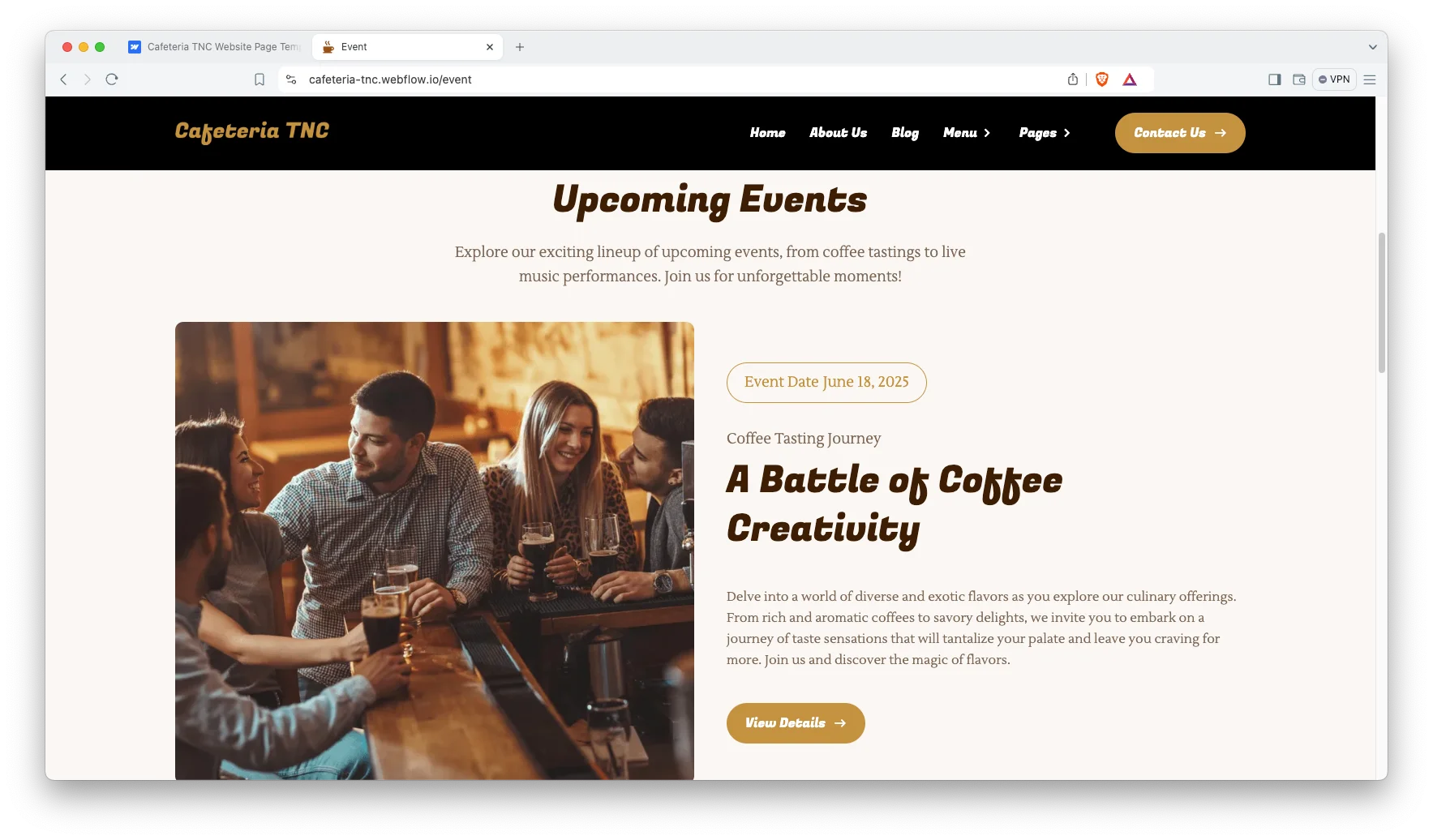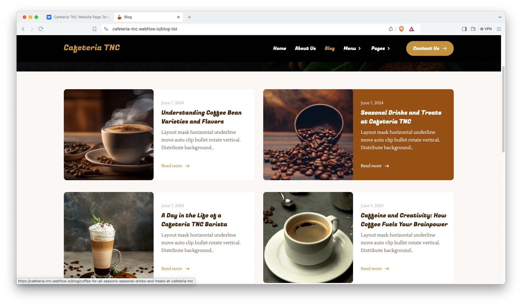 Cafeteria TNC ( Webflow Coffee Shop Template )