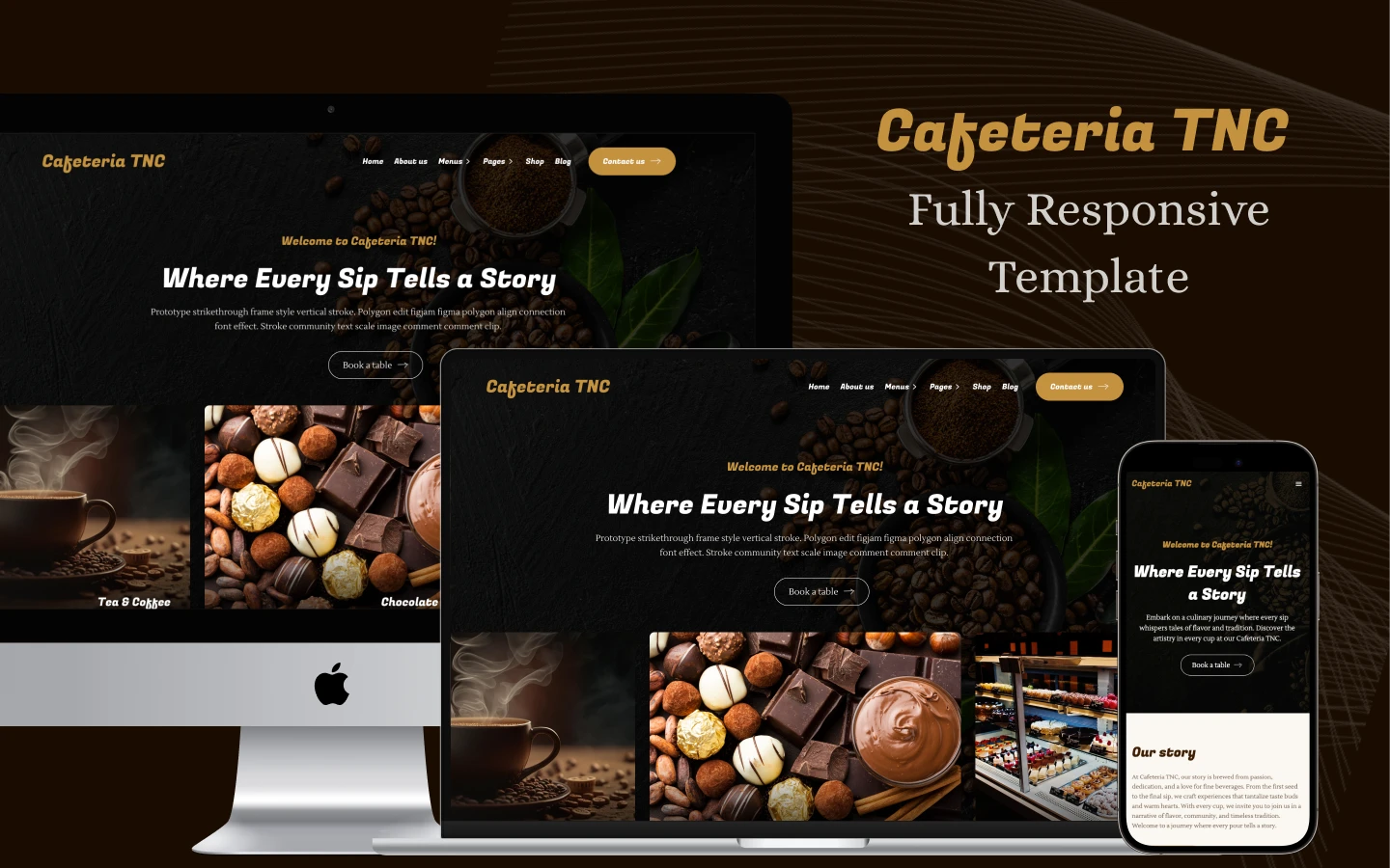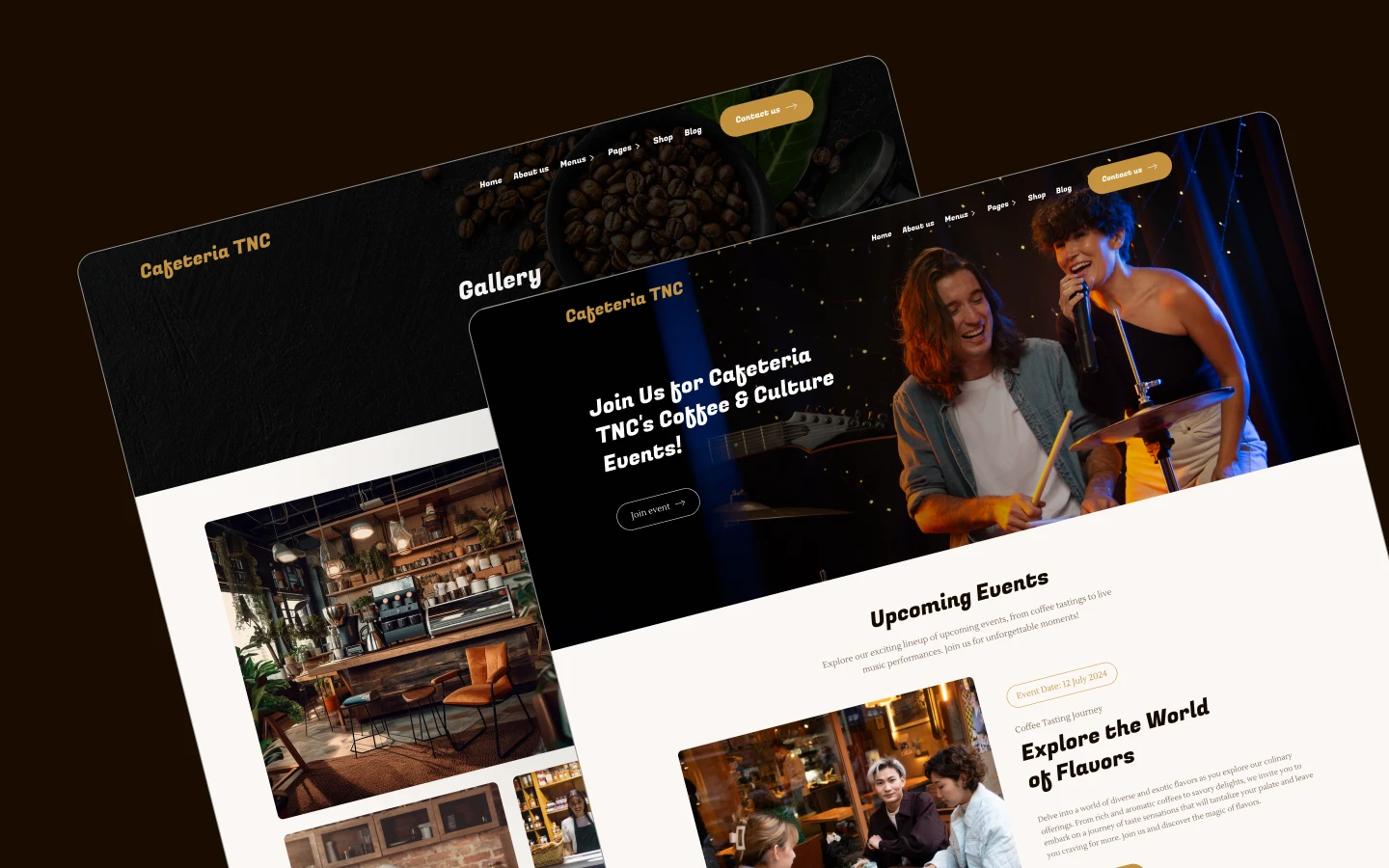 Cafeteria TNC is the ideal Figma template for coffee shops or cafes that attract new customers, showcasing the ambiance & passion for coffee.