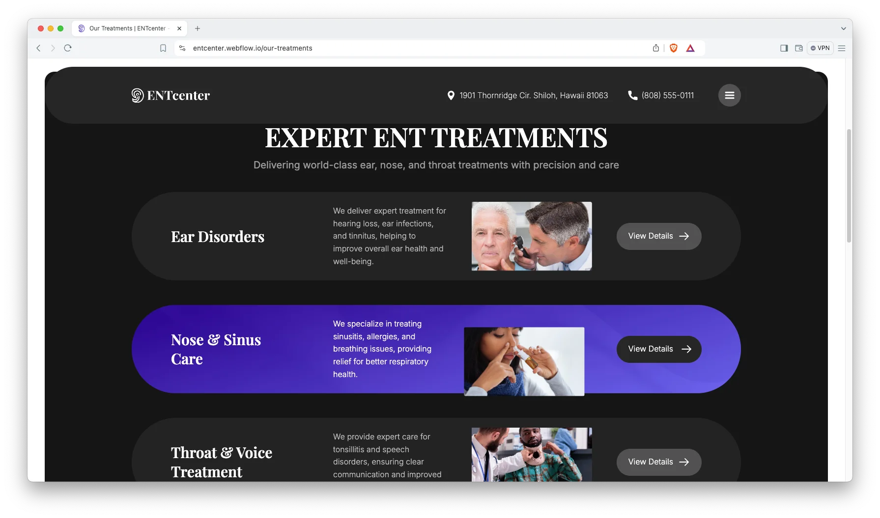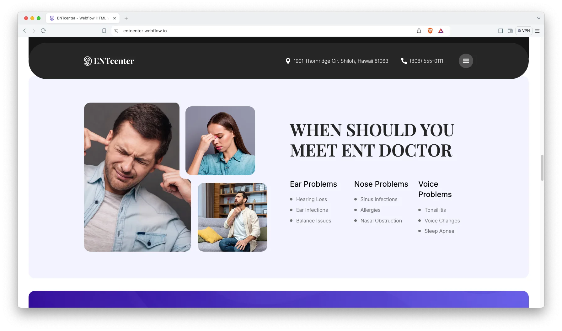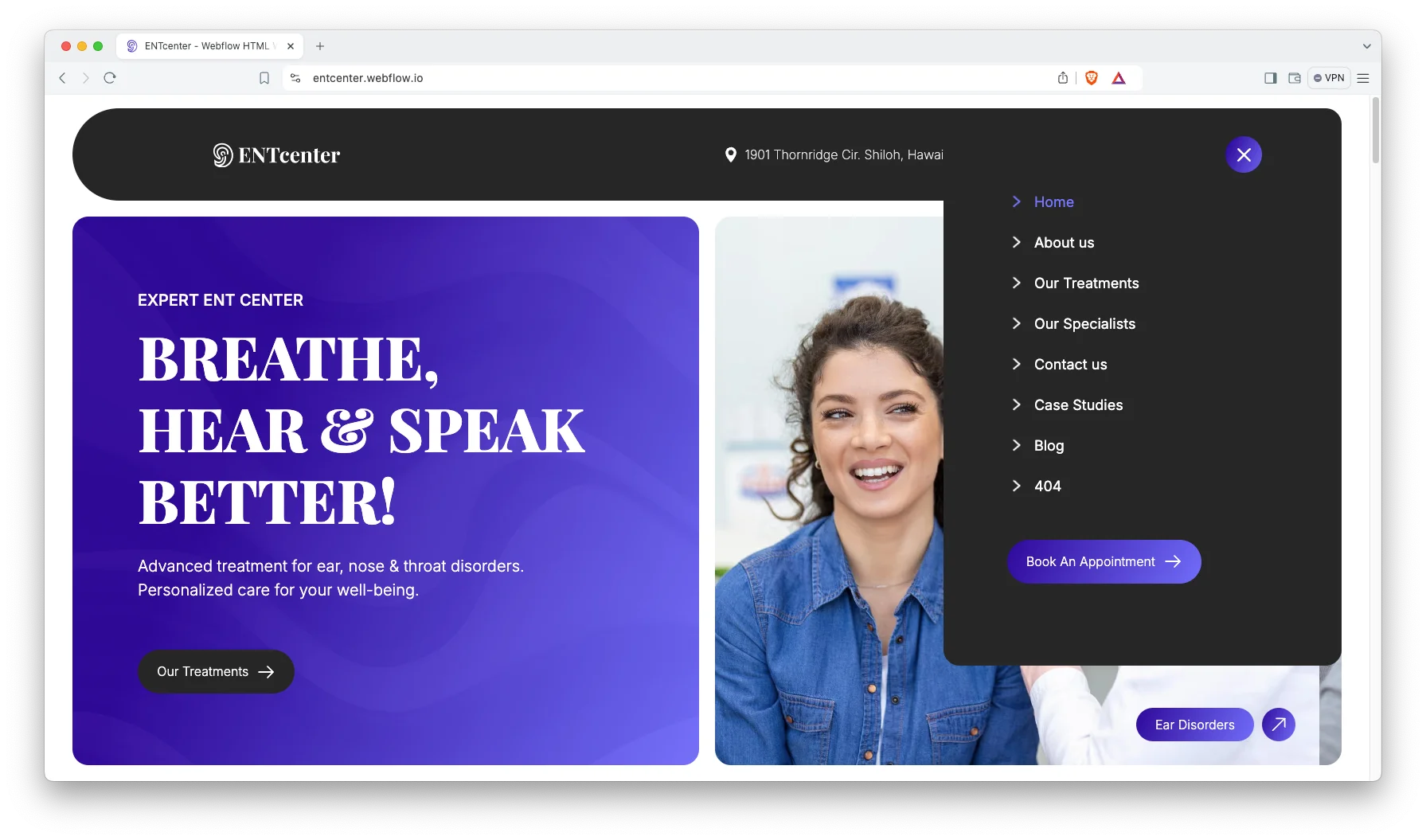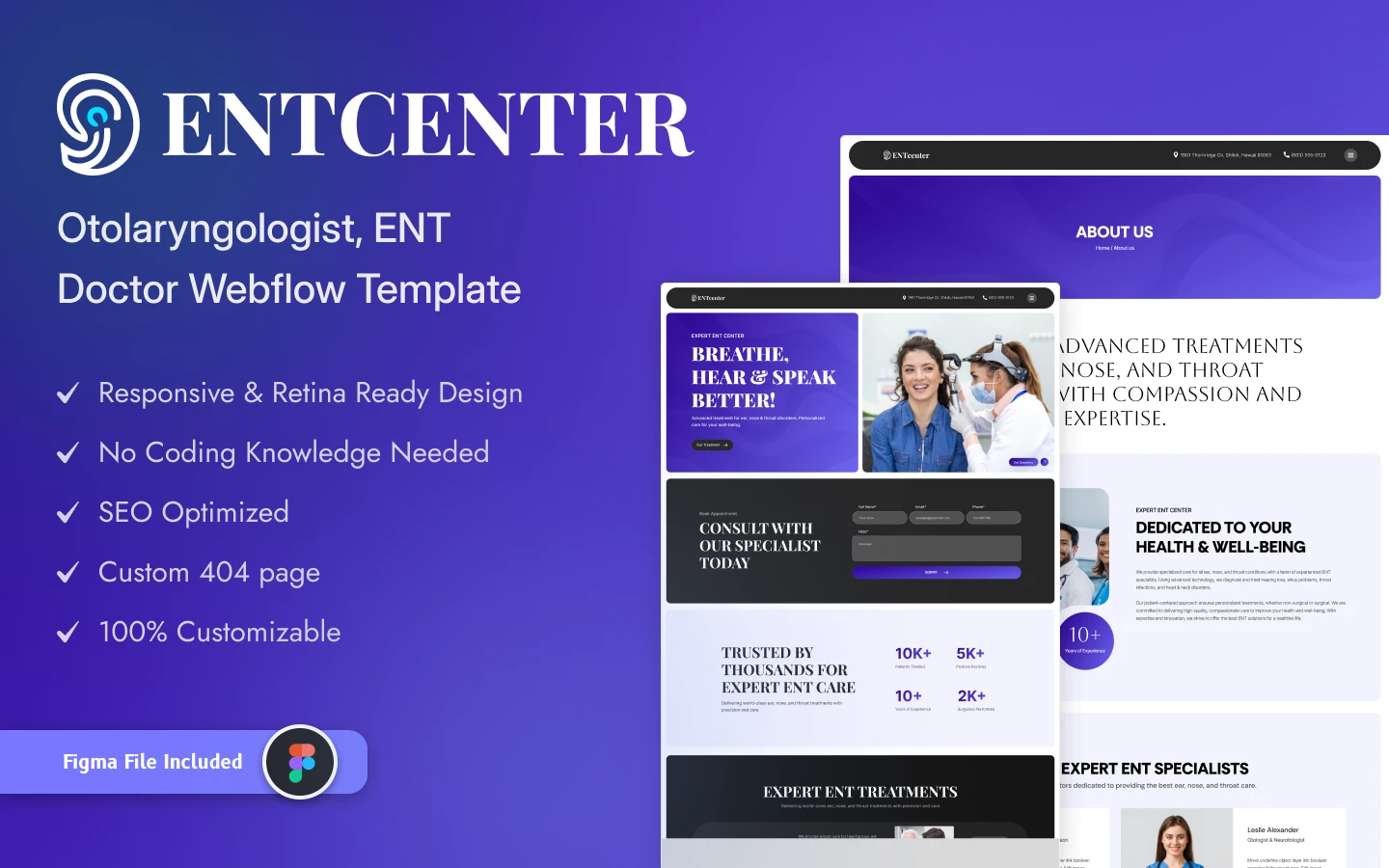 Get the Figma file of ENTcenter Webflow website template. ENTcenter combines minimal design, charming animation, advanced interaction and CMS functionality. Perfectly suited for ENT specialists, doctors, clinics, hospitals, medical & healthcare professionals.
