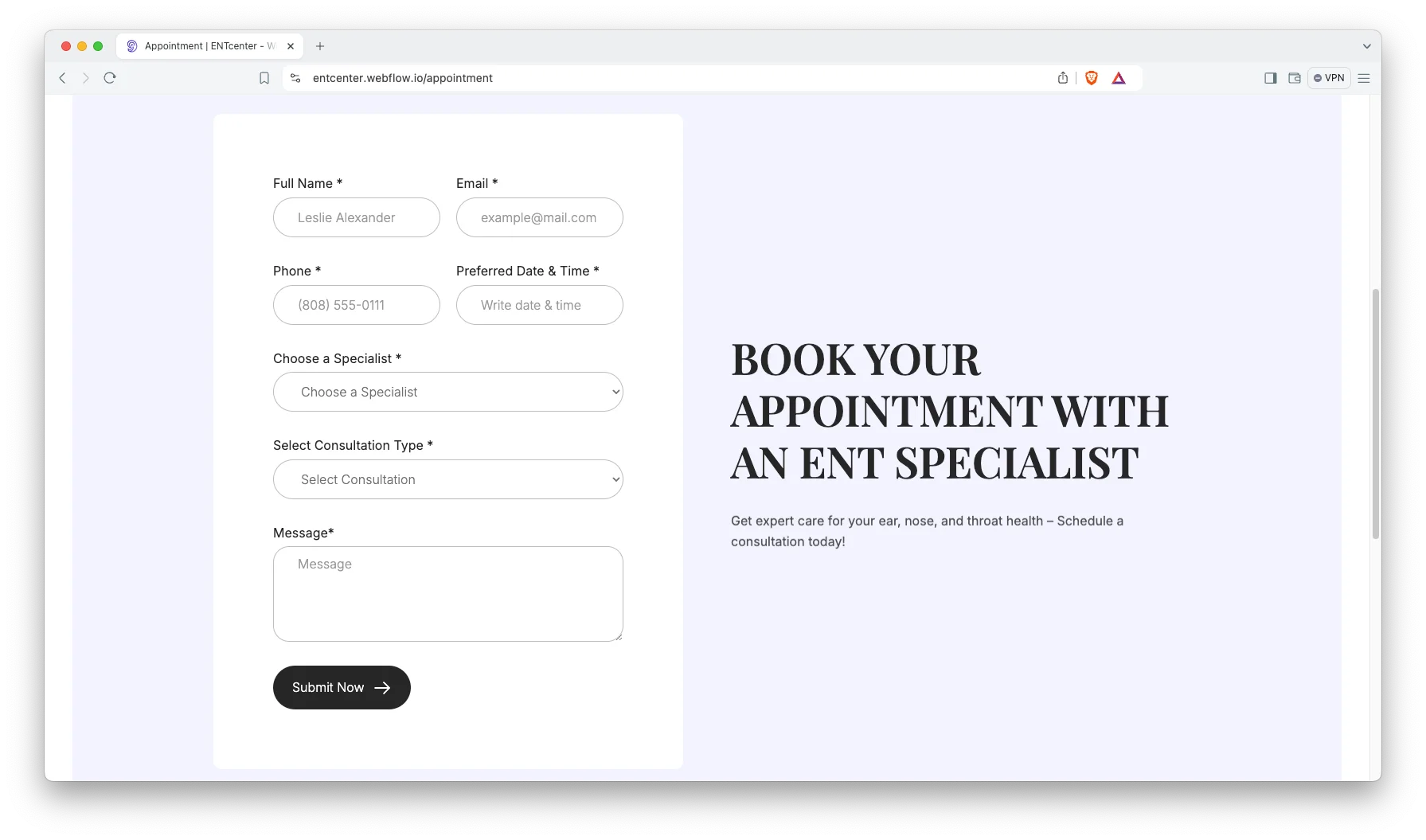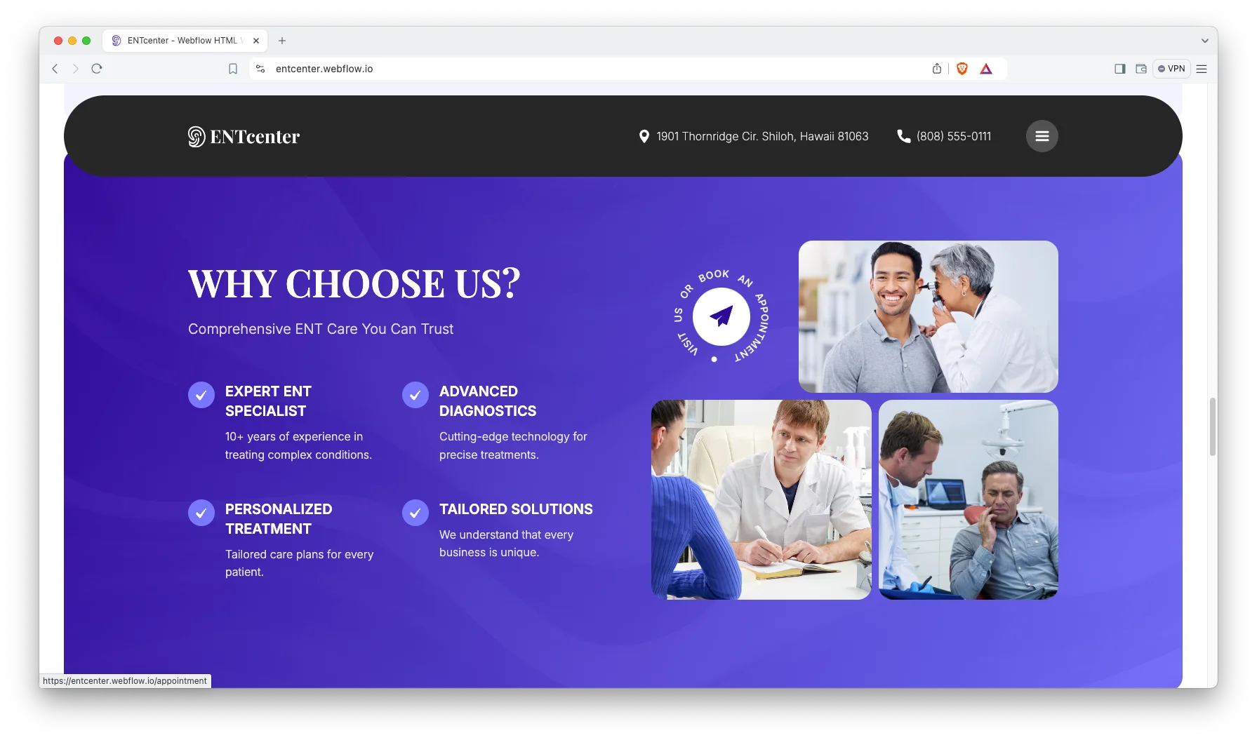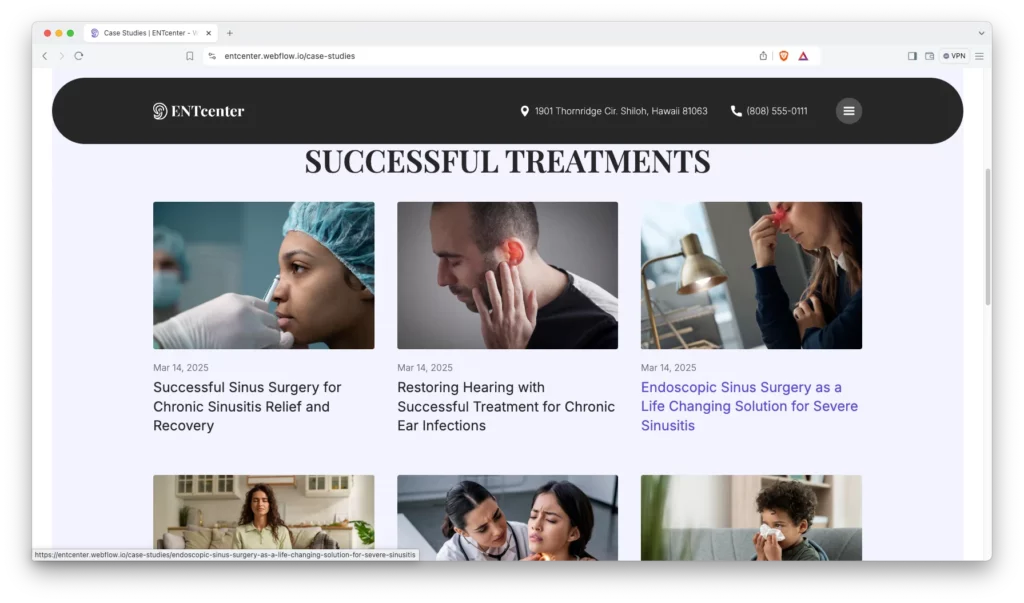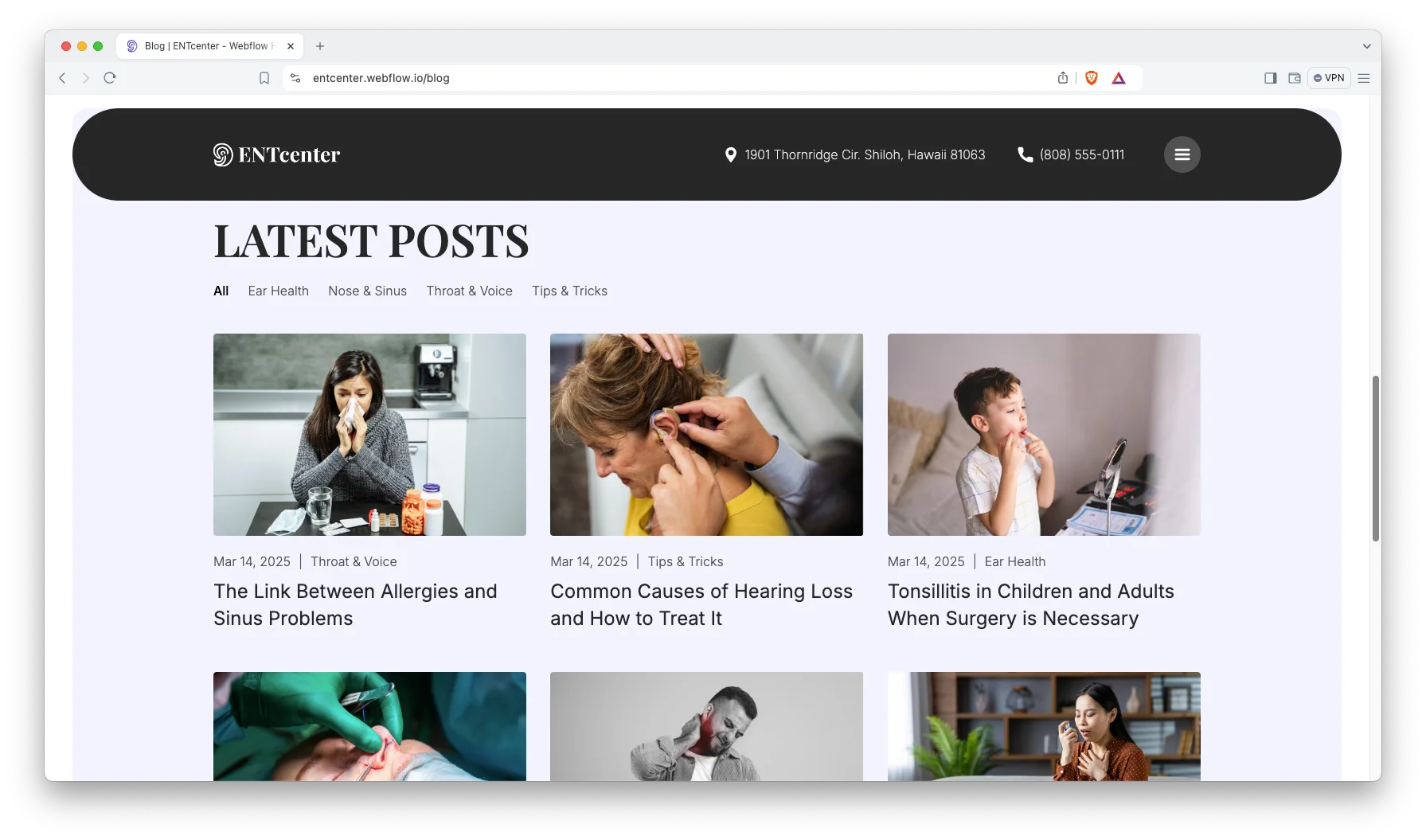 Get the Figma file of ENTcenter Webflow website template. ENTcenter combines minimal design, charming animation, advanced interaction and CMS functionality. Perfectly suited for ENT specialists, doctors, clinics, hospitals, medical & healthcare professionals.