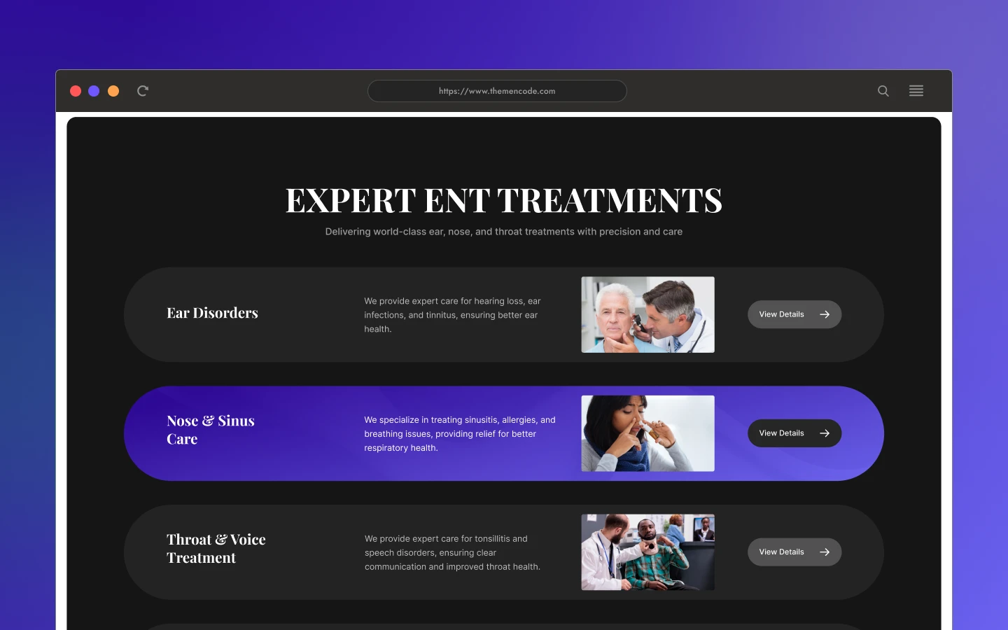 ENTcenter combines minimal design, charming animation, advanced interaction and CMS functionality. Perfectly suited for ENT specialists, doctors, clinics, hospitals, medical & healthcare professionals.