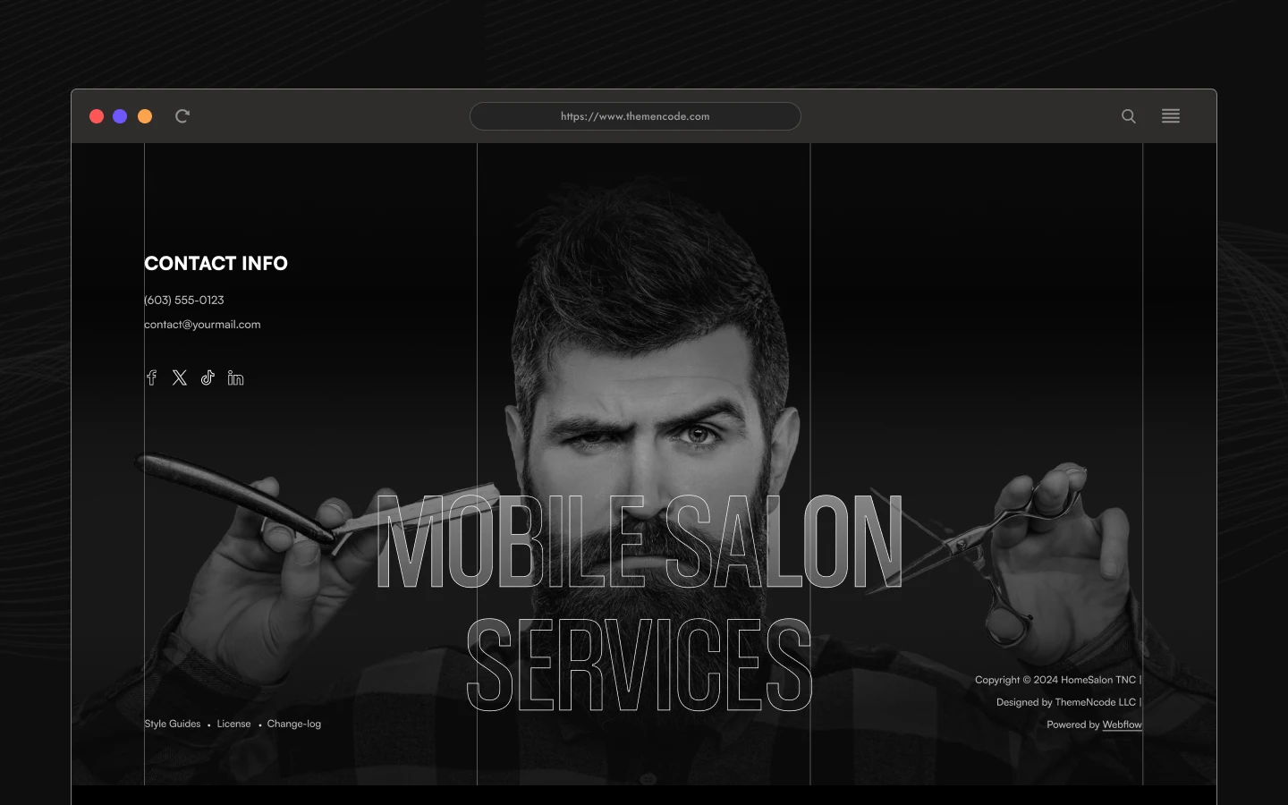HomeSalon TNC is a single page webflow template designed with such details to give you the most professional salon home service. Highlight your skills and beauty services, book appointments and attract more clients to your business.