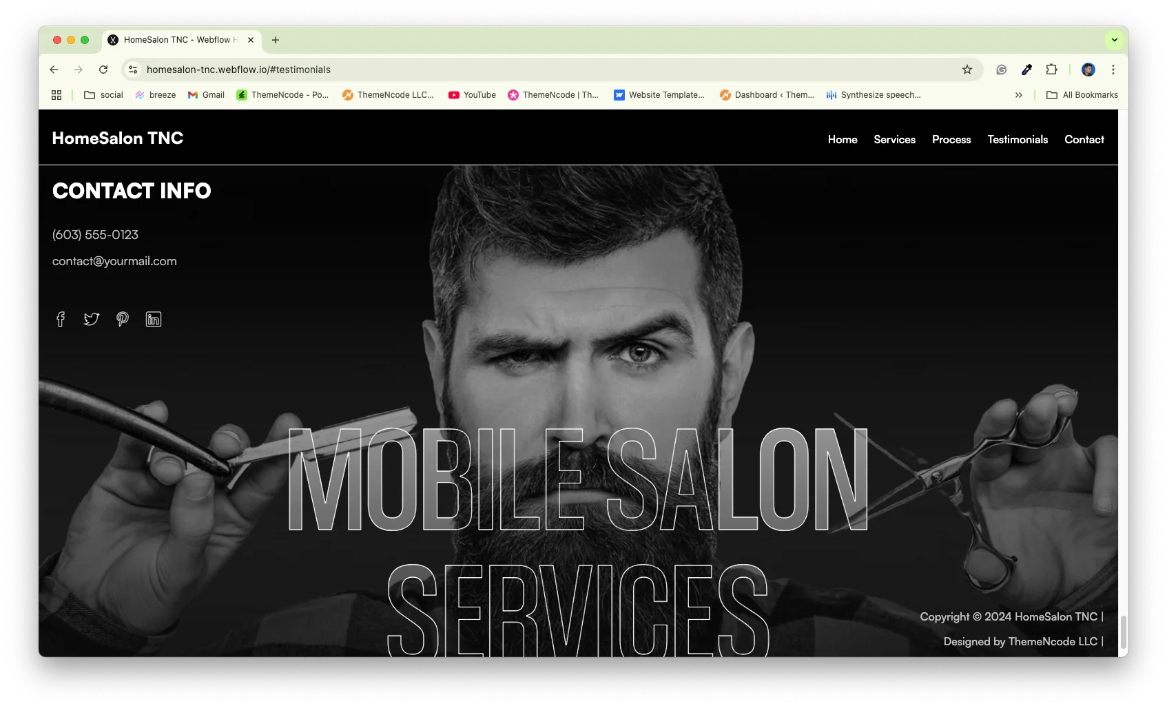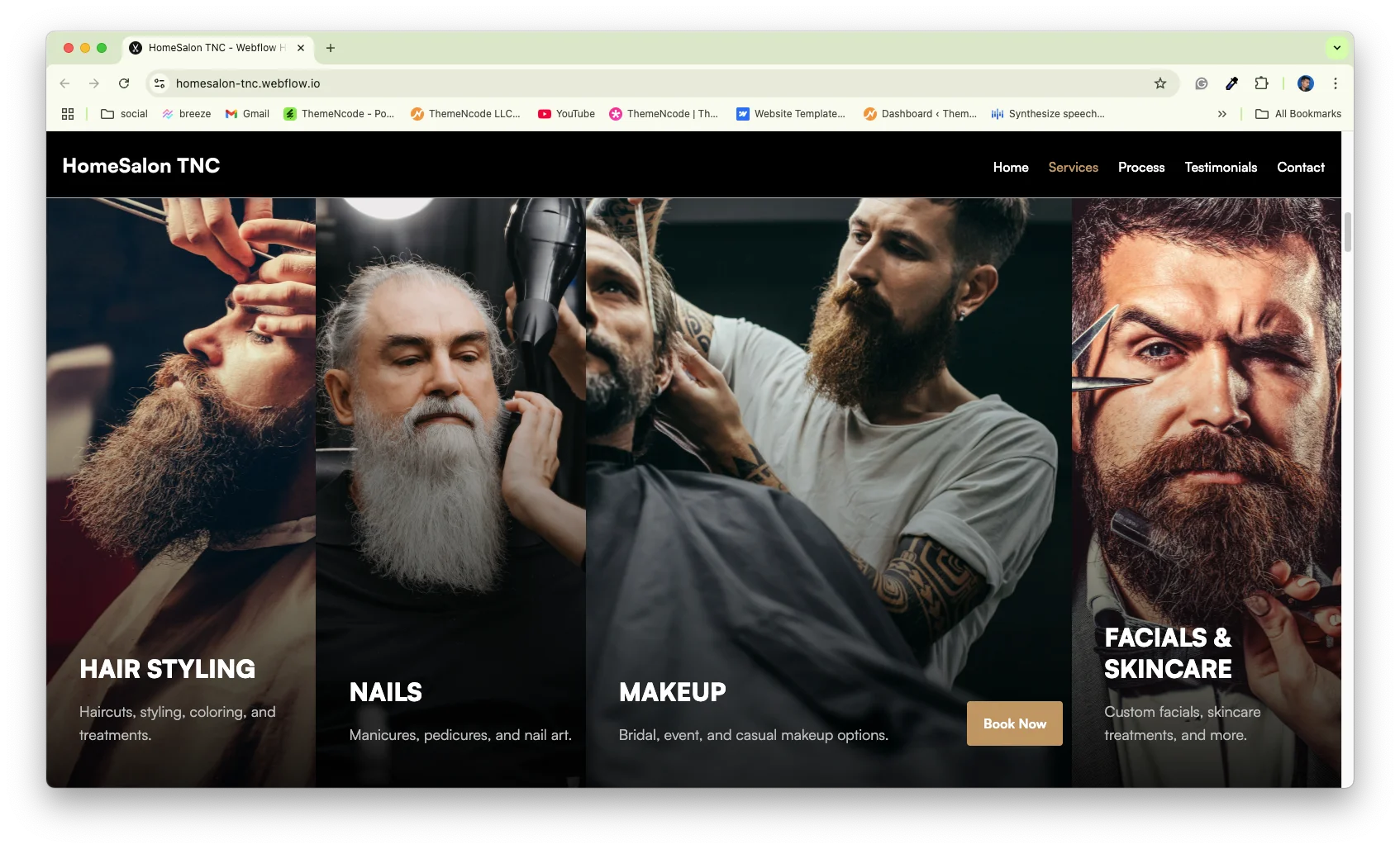 HomeSalon TNC is a single page webflow template designed with such details to give you the most professional salon home service. Highlight your skills and beauty services, book appointments and attract more clients to your business.