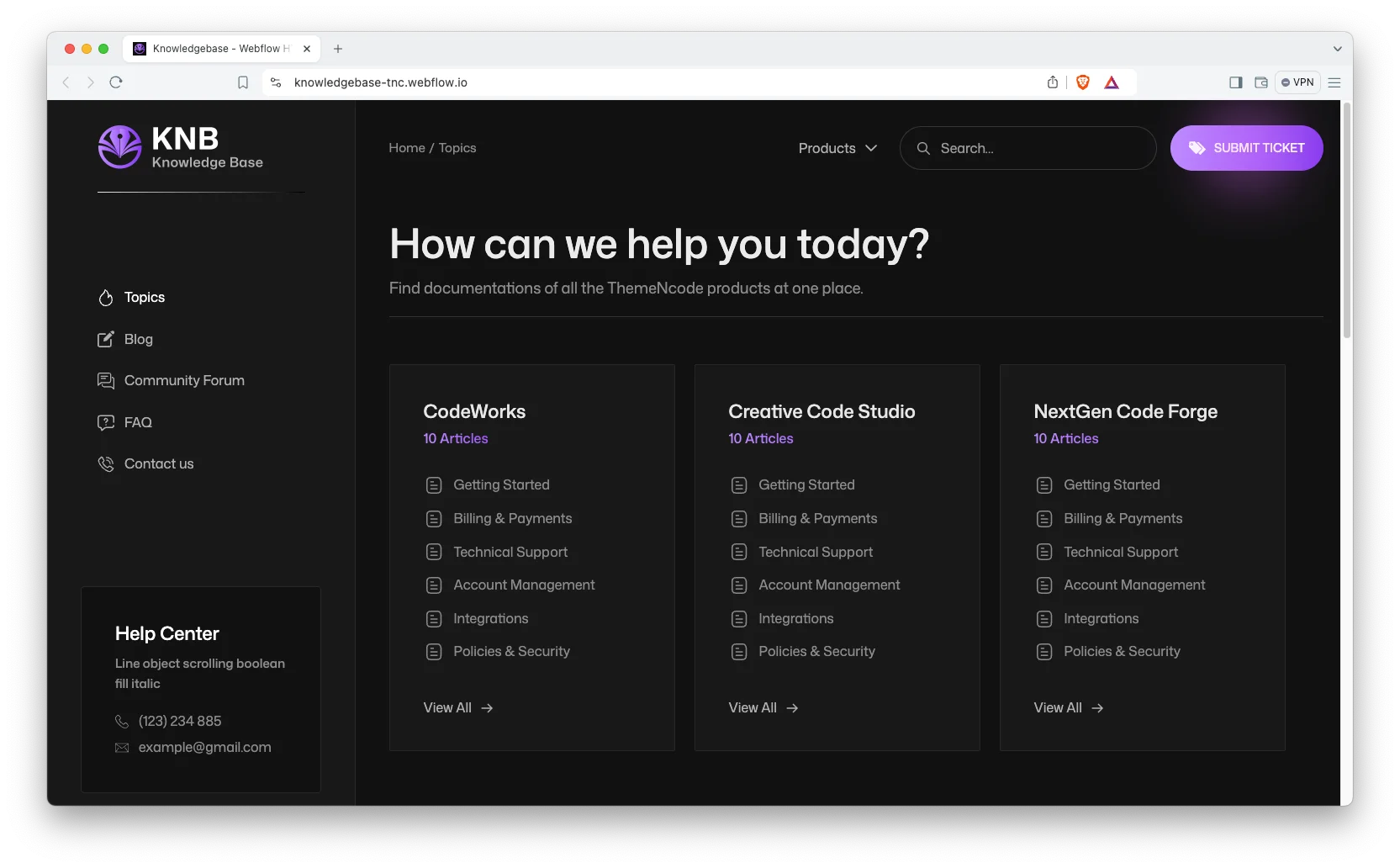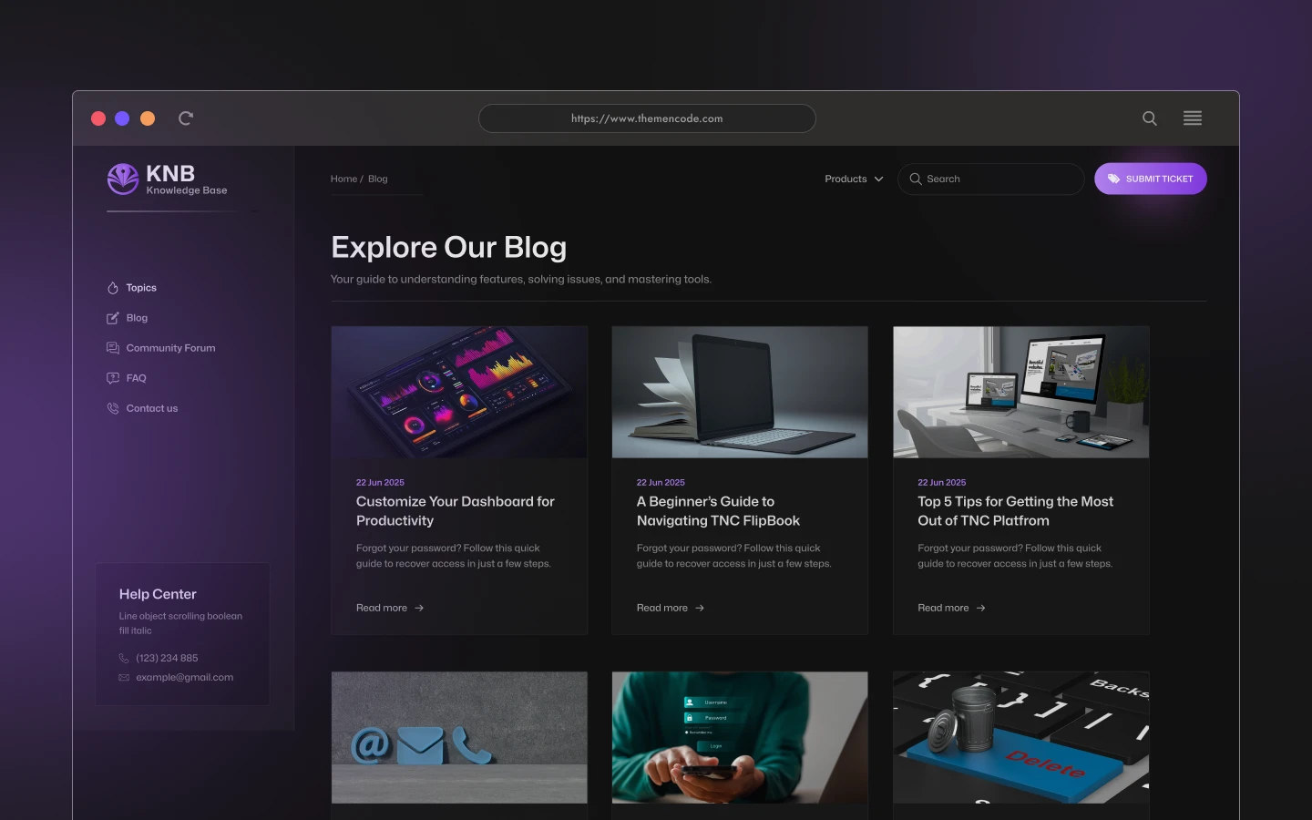 Streamline your documentation platform & create a responsive and dark variant website with KnowledgeBase. Comes with a powerful live search option. A specialized website solution for documentation, help center, manual guide, support center, and more.
