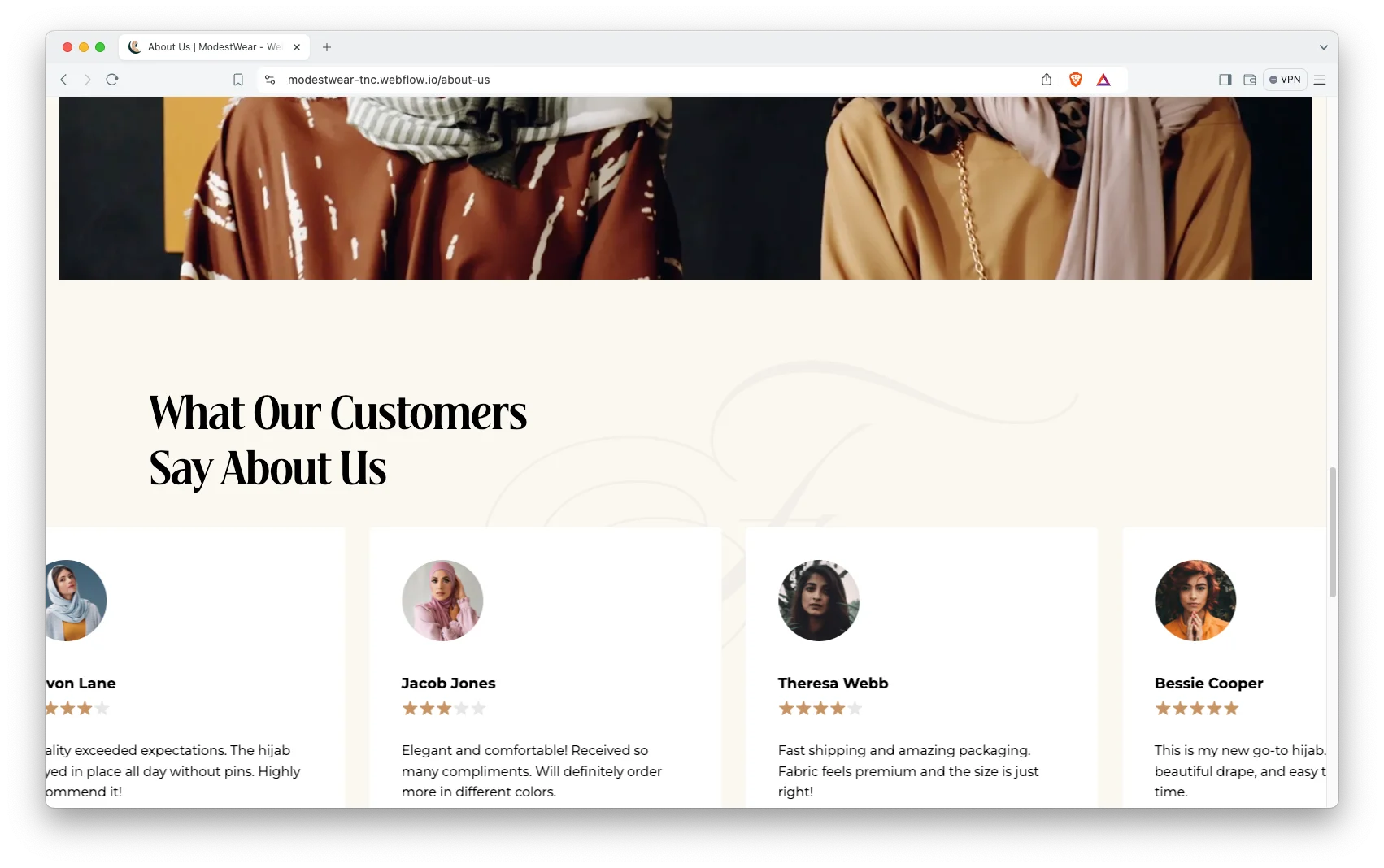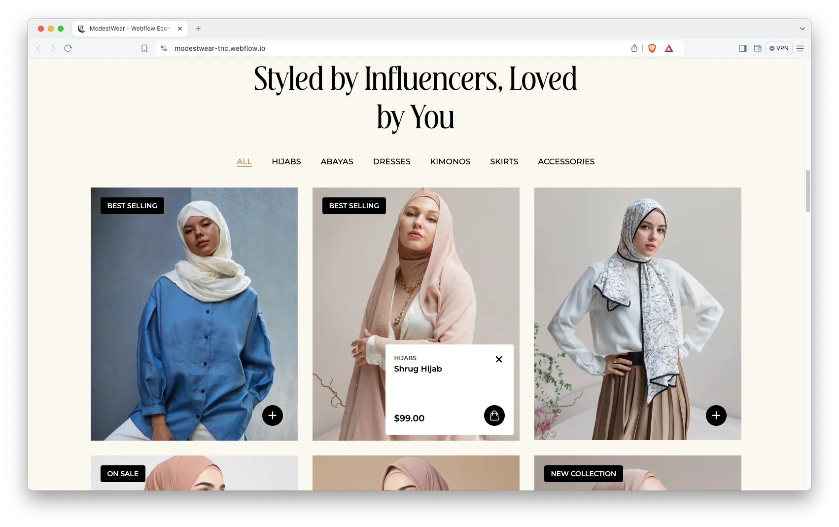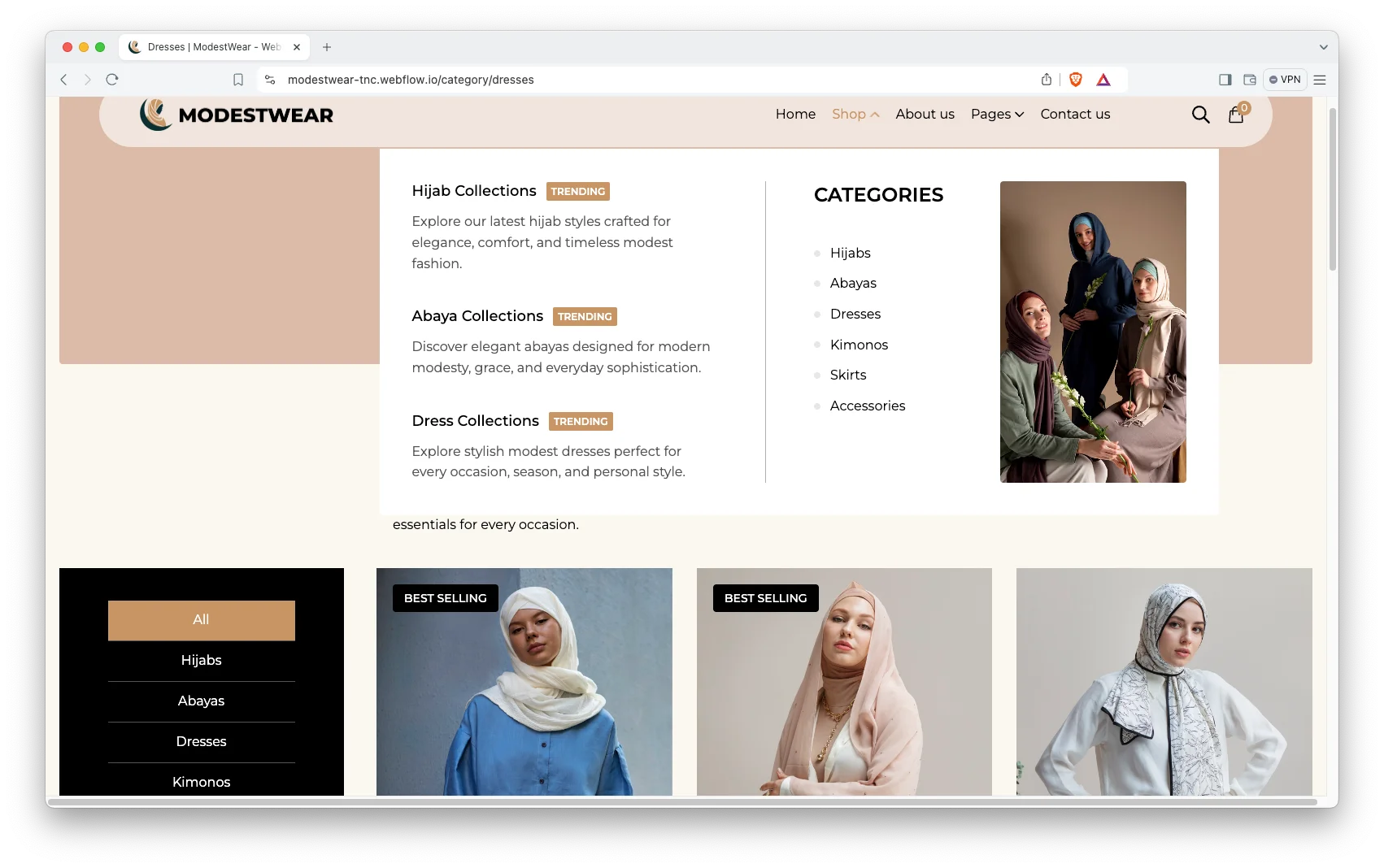 ModestWear is a trendy and premium webflow eCommerce template for modest fashion businesses. Suitable for fashion stores, clothing brands, and boutique businesses. It combines animation, advanced interaction, CMS, and eCommerce functionality.