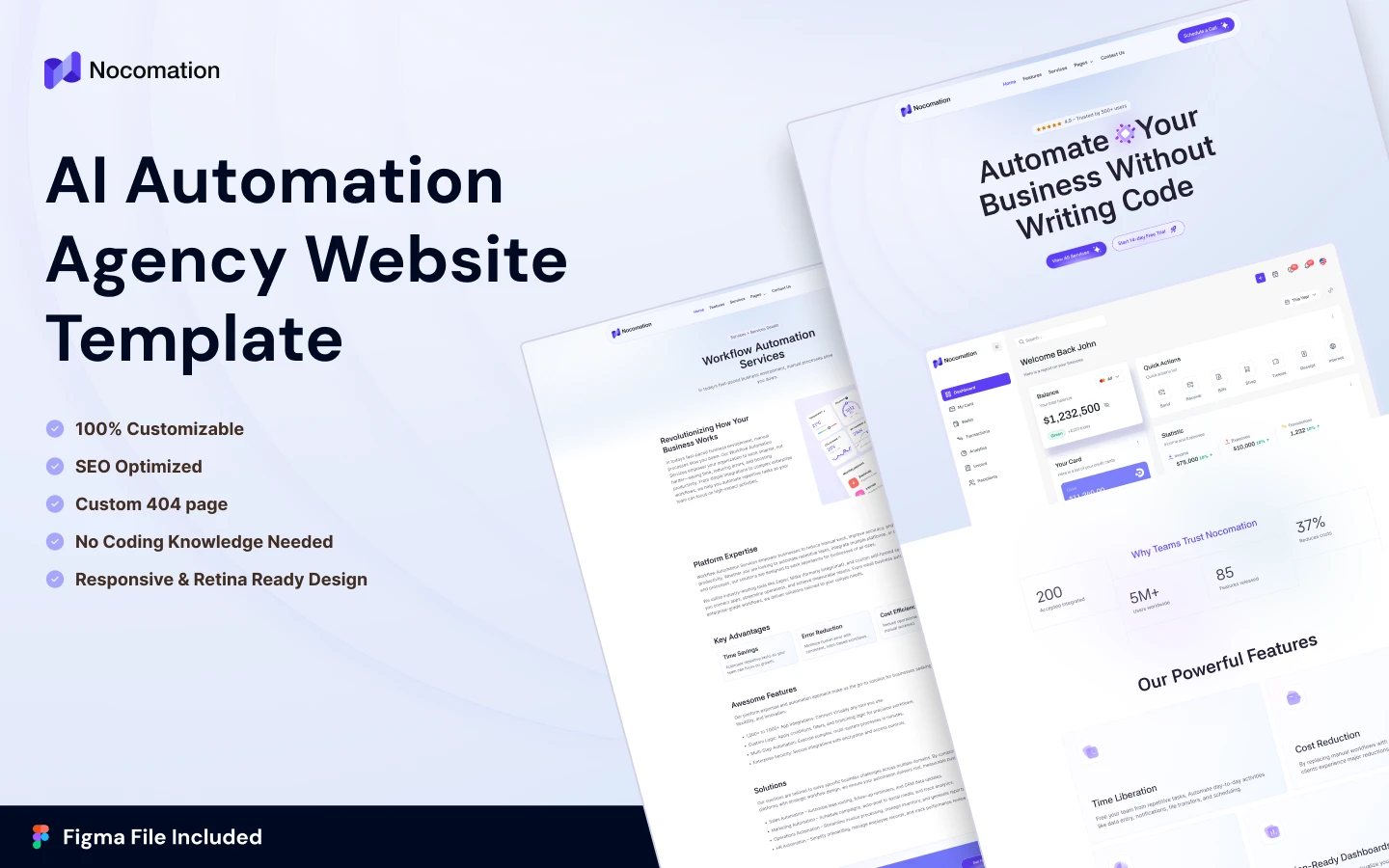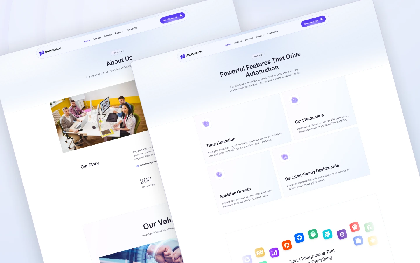 Launch your tech, SaaS, or no-code automation agency website with Nocomation. Designed for software companies, startups, and agencies to showcase innovative solutions, integrations, and client success.