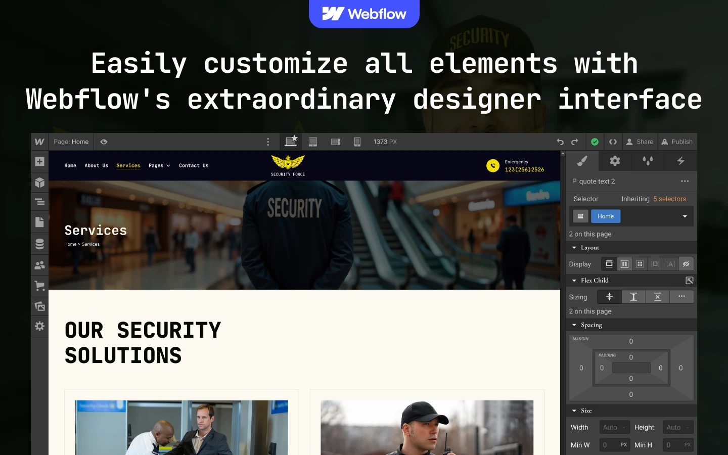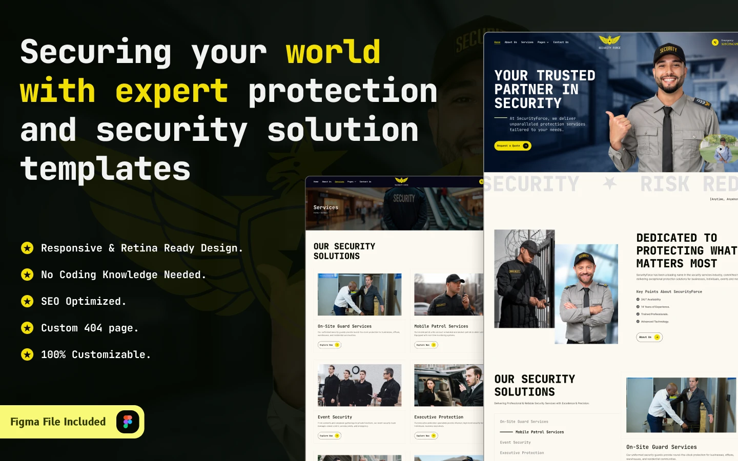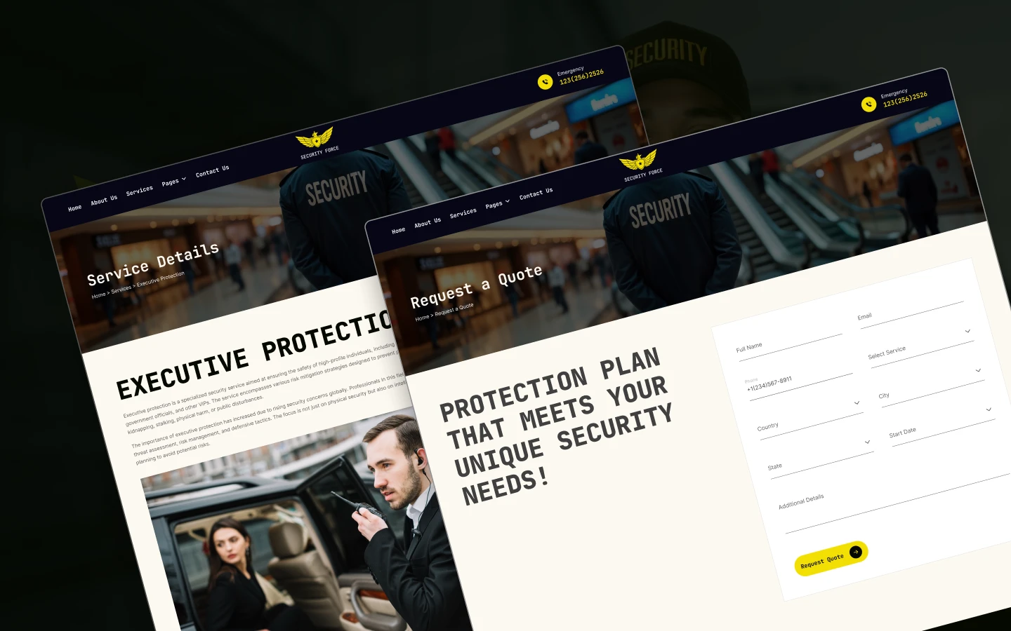 SecurityForce Figma website is a dynamic security provider agency template with an elegant design with CMS integration. Designed for security company, private investigator, bodyguard, security agency, emergency service provider & security consultant websites.