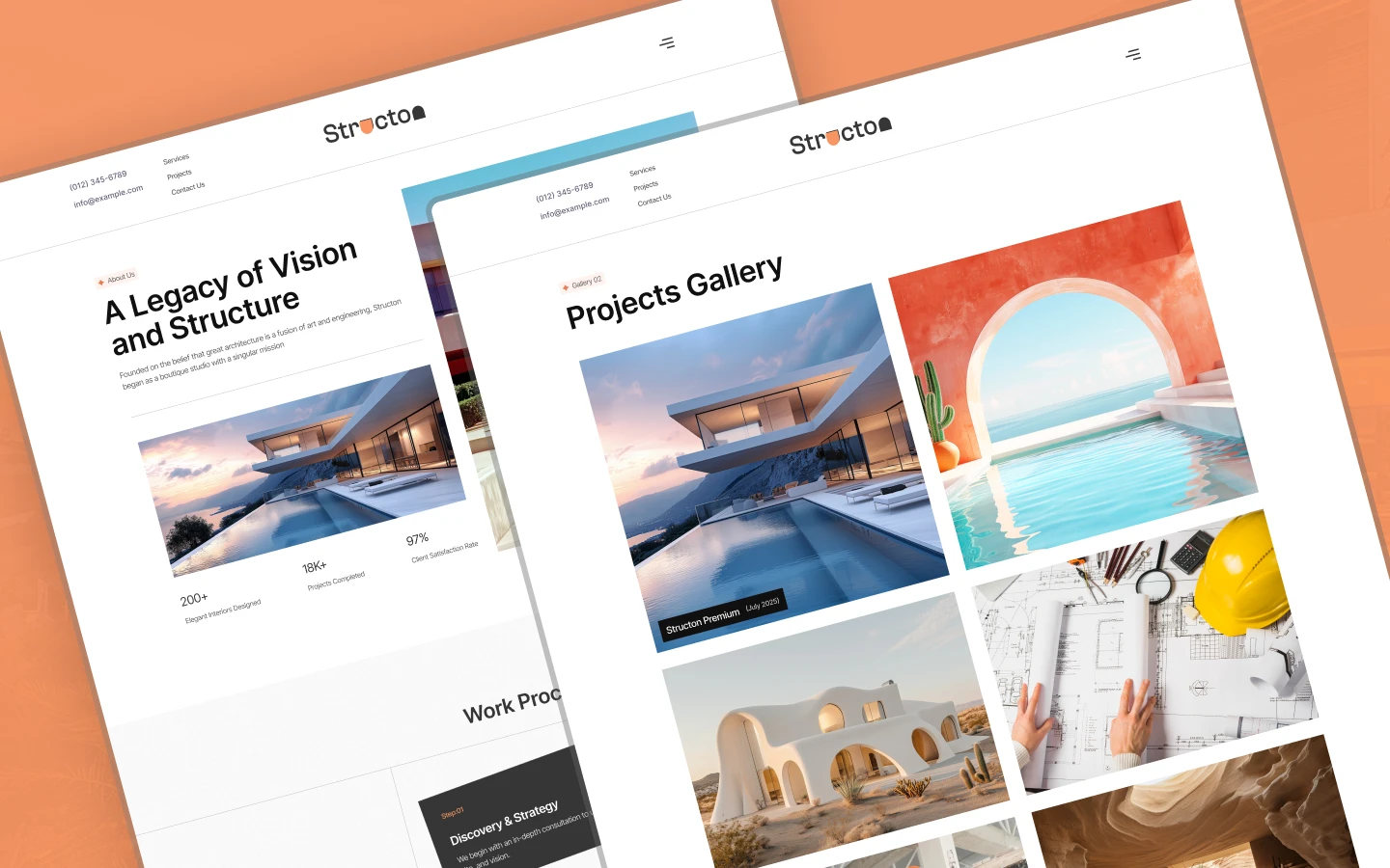 Launch your architecture or design firm website with Structon. Created for architecture firms, design studios, and urban planning consultants to showcase portfolio projects, services, and client trust with elegance and clarity.