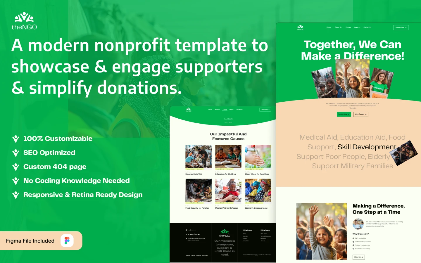 TheNGO is a minimal, clean, and well-structured HTML template for nonprofit, NGO, fundraising, and charity websites. It can be easily used for charity agencies, foundations, donations, funds, non-profit organizations, and volunteers.