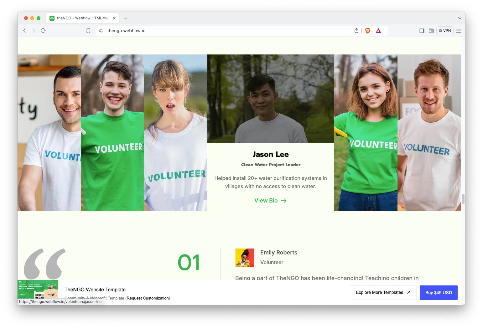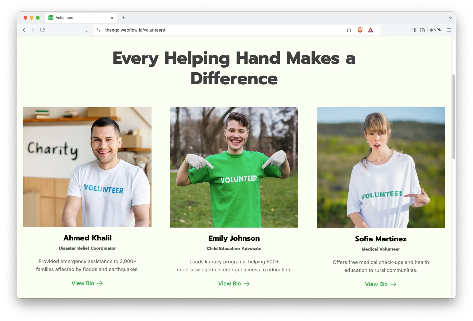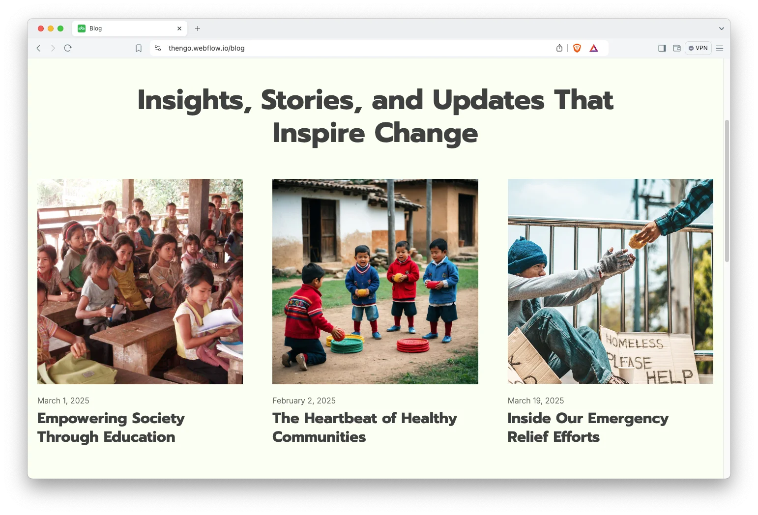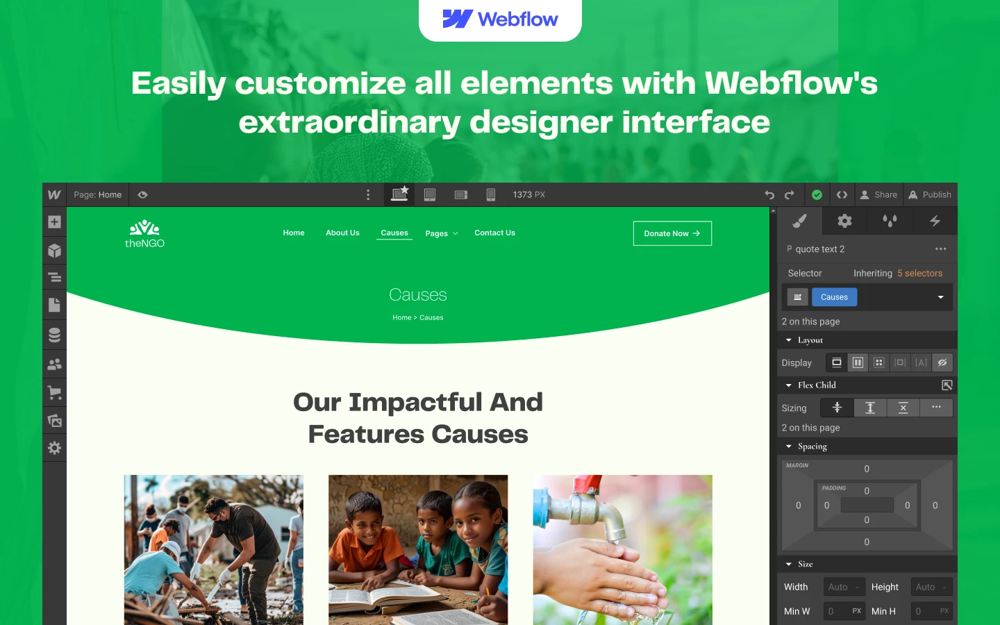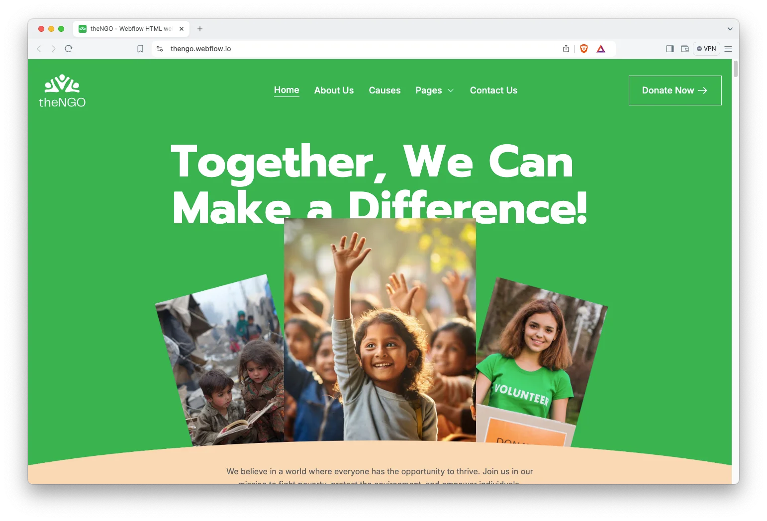 TheNGO is a minimal, clean, and well-structured webflow template for nonprofit, NGO, fundraising, and charity websites. It can be easily used for charity agencies, foundations, donations, funds, non-profit organizations, and volunteers.