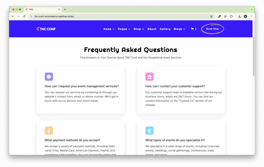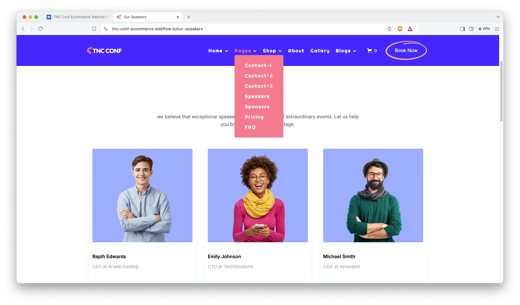 The ultimate Event Ecommerce Webflow Template for events and conferences including landing pages, speakers, schedule and many other useful sections. Comes with Ecommerce functionality which makes it even more useful.
