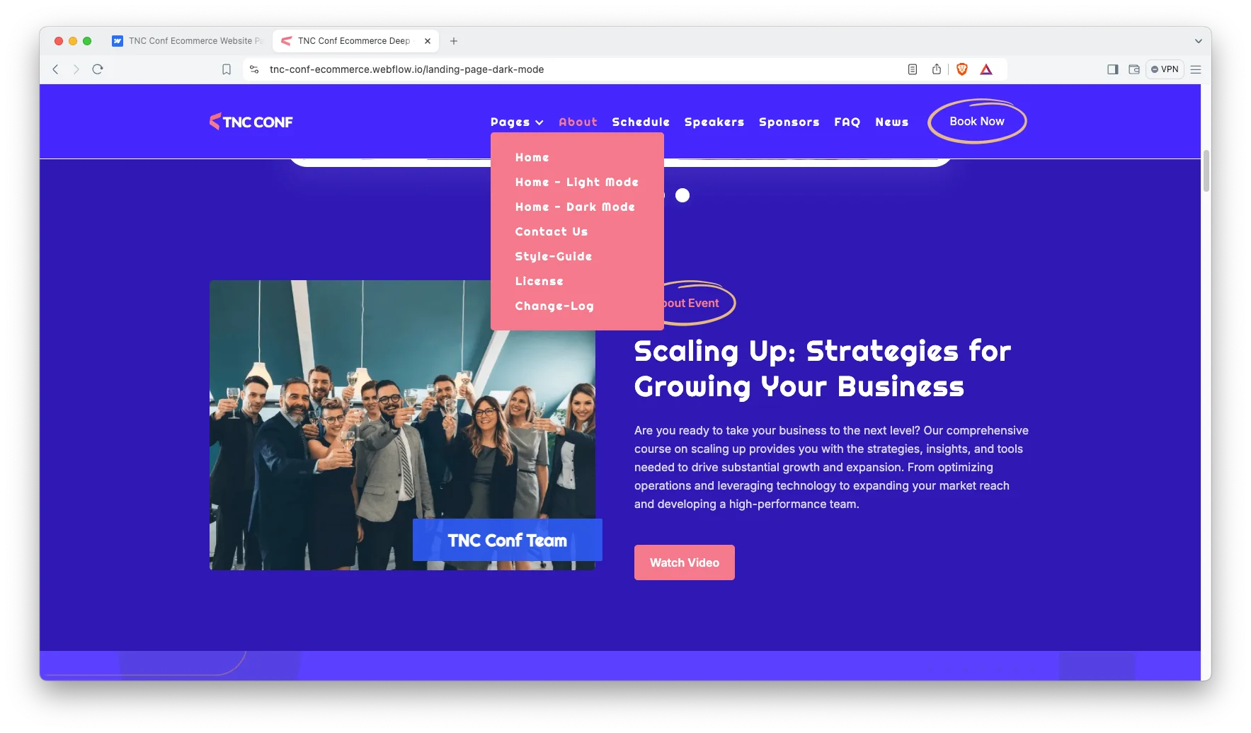A specialized Event Webflow template for events with both dark and light homepage layout, built in blog & contact pages.