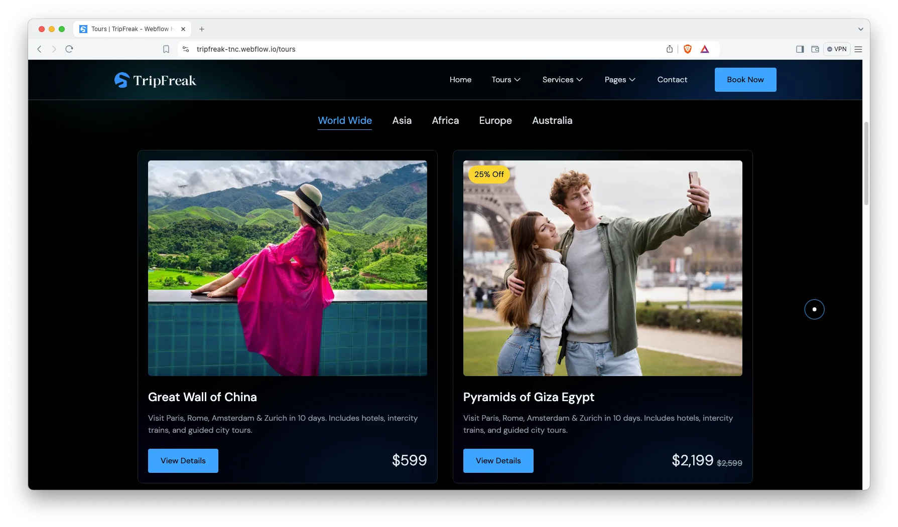 TripFreak ( Webflow Travel & Tourism Website Template )