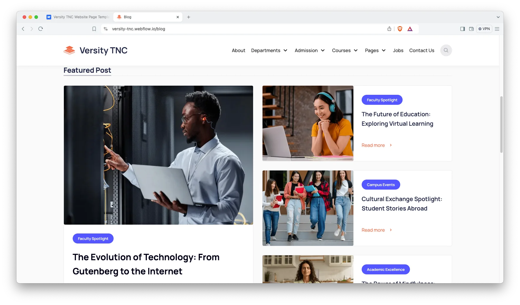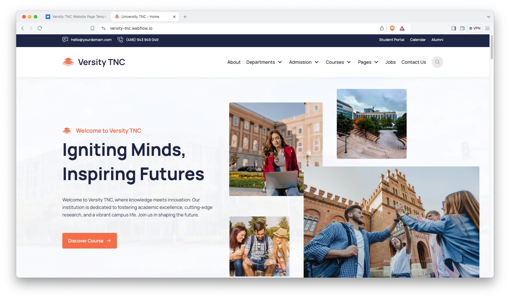Create a website that reflects the spirit of your university, faculty expertise and vibrant campus life. Easily manage website content and inspire students with unique features and responsive design with Versity TNC.